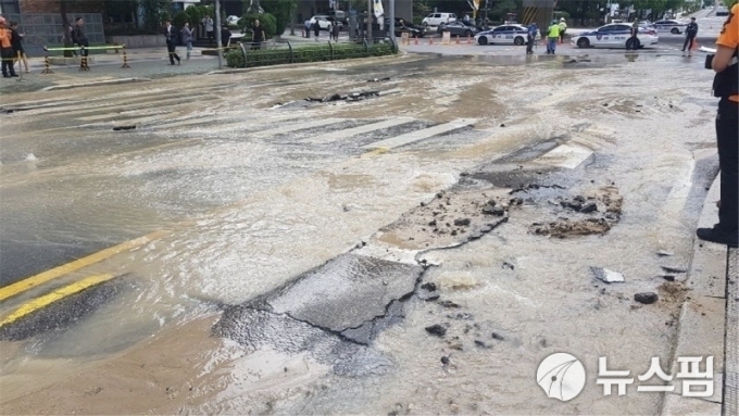 사고가 나자 중구는 안전안내문자를 통해 "수도관 파열로 인한 도로가 통제" 사실을 알리고 차량의 우회 운행을 당부했다.