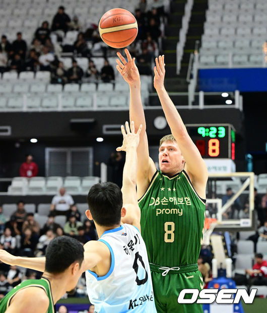 KT는 11승 11패(6위), DB는 12승 9패(4위)를 기록중이다.1쿼터 DB 헨리 엘런슨이 슛을 시도하고 있다. 2025.12.19 /jpnews@osen.co.kr