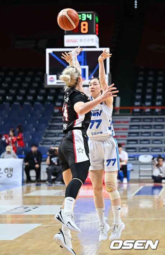 [OSEN=부산, 이석우 기자] 19일 부산 사직실내체육관에서 BNK금융 2025~2026 여자프로농구 부산 BNK와 아산 우리은행의 경기가 열렸다.