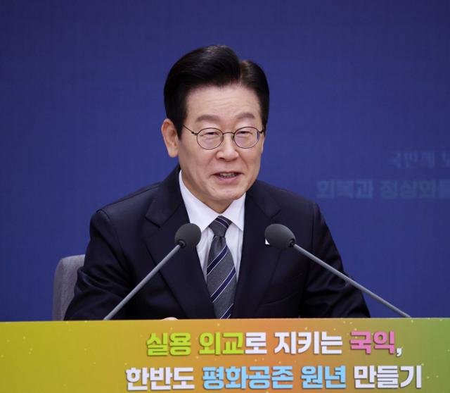 이재명 대통령이 19일 정부서울청사 별관에서 열린 외교부(재외동포청)·통일부 업무보고에서 발언하고 있다. 왕태석 선임기자 |