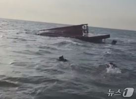 앞서 4시간 전인 오후 2시 14분쯤 해경에는 인천 옹진군 선미도 북방 약 13㎞(7해리) 지점 인근 해상에서 5명이 승선한 7.9톤짜리 어선이 전복됐다는 신고가 접수된 바 있다.