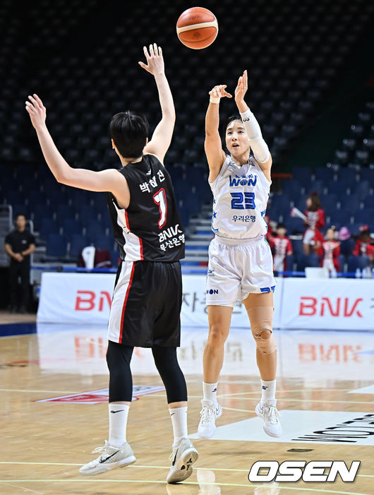 [OSEN=부산, 이석우 기자] 19일 부산 사직실내체육관에서 BNK금융 2025~2026 여자프로농구 부산 BNK와 아산 우리은행의 경기가 열렸다.