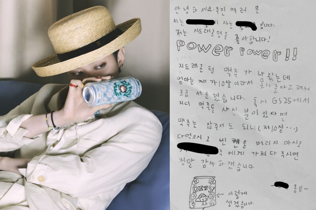 [헤럴드경제=최원혁 기자] 지드래곤의 팬이라고 밝힌 한 초등학생이 ‘맥주캔’을 애타게 찾고 있다는 내용의 손편지를 남겨 온라인에서 화제다.