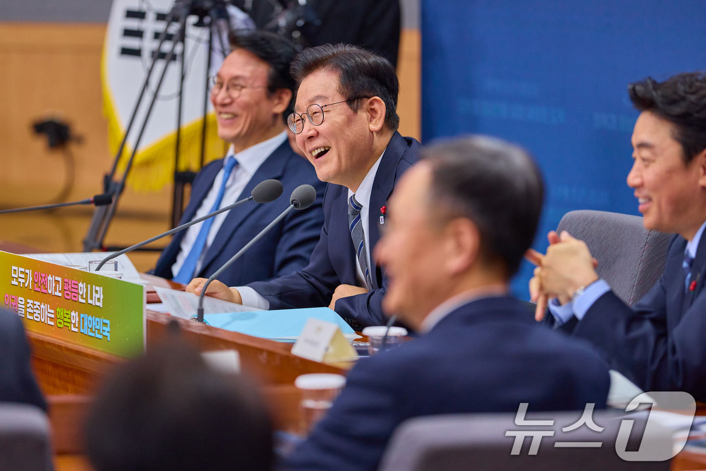 (서울=뉴스1) 허경 기자 = 이재명 대통령이 19일 서울 종로구 정부서울청사 별관에서 열린 법무부(대검찰청)·성평등가족부 업무보고에서 미소 짓고 있다. (대통령실 제공. 재판매 및 DB 금지) 2025.12.19/뉴스1