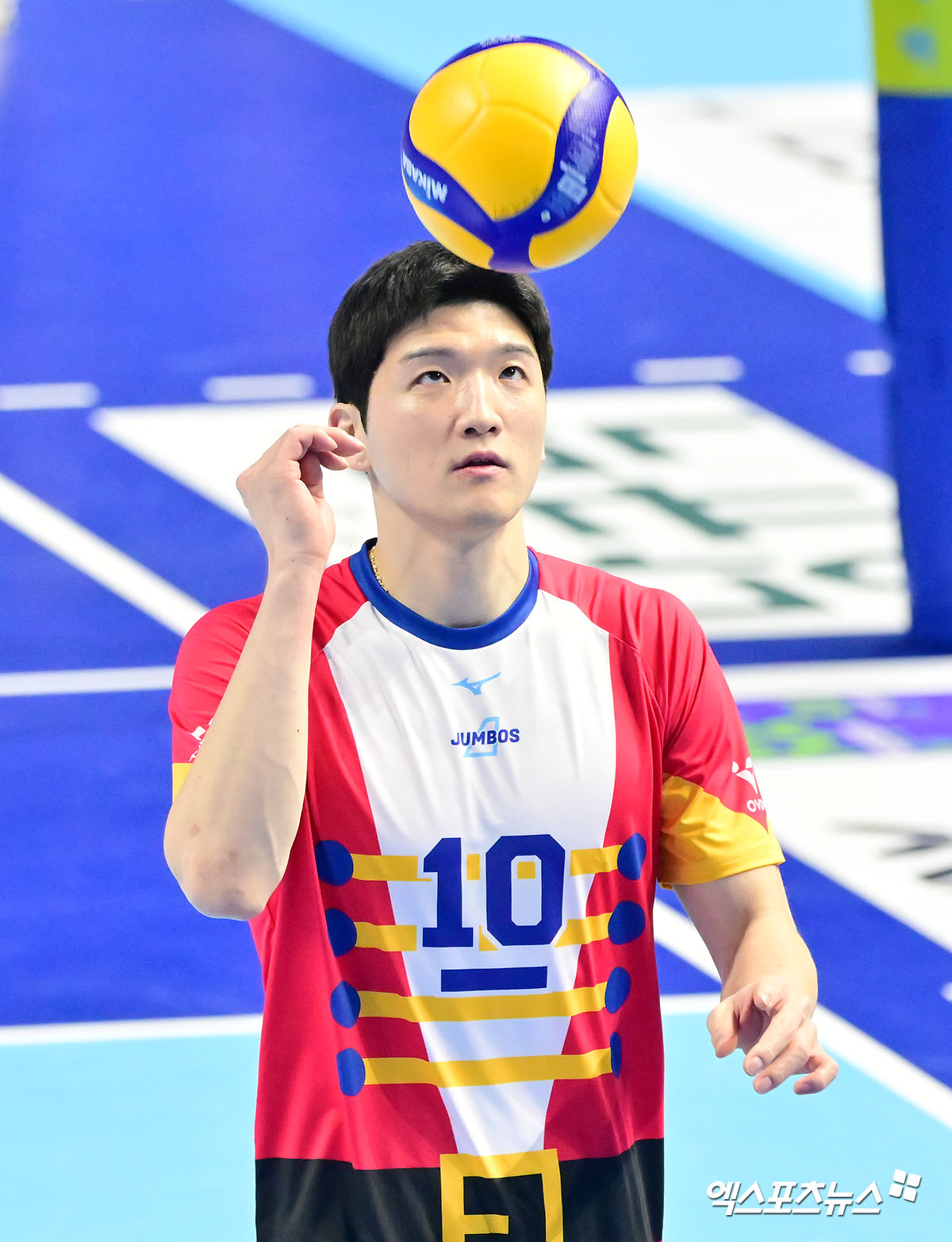 (엑스포츠뉴스 인천, 김한준 기자) 19일 오후 인천 계양체육관에서 열린 '진에어 2025-2026 V-리그' 대한항공과 한국전력의 경기, 대한항공 정지석이 서브를 준비하고 있다.