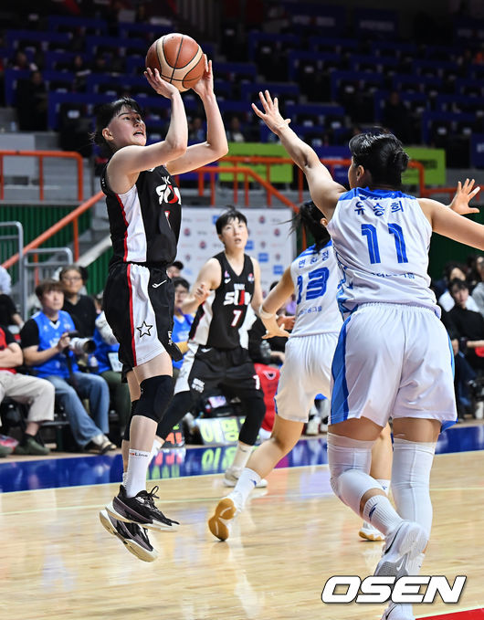 부산 BNK 이소희가 아산 우리은행 유승희의 마크를 피해 골밑슛을 시도하고 있다. 2025.12.19 / foto0307@osen.co.kr