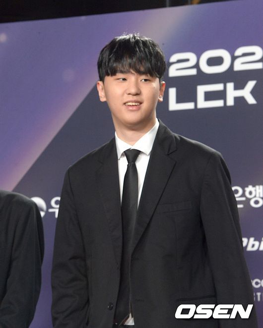 올해의 퍼블 플레이어 상을 수상한 피어엑스 정글러 ‘랩터’ 전어진이 레드 카펫에서 포토타임에 임하고 있다. / scrapper@osen.co.kr