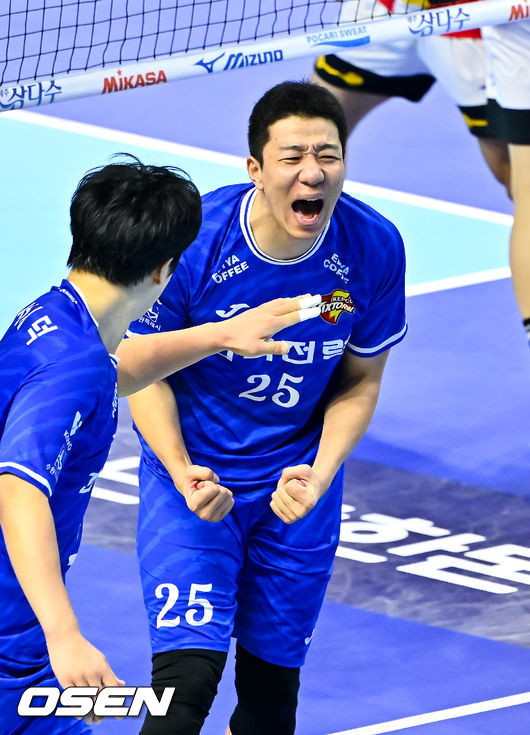 1세트 한국전력 신영석이 블로킹 성공 후 기뻐하고 있다 2025.12.19 / soul1014@osen.co.kr