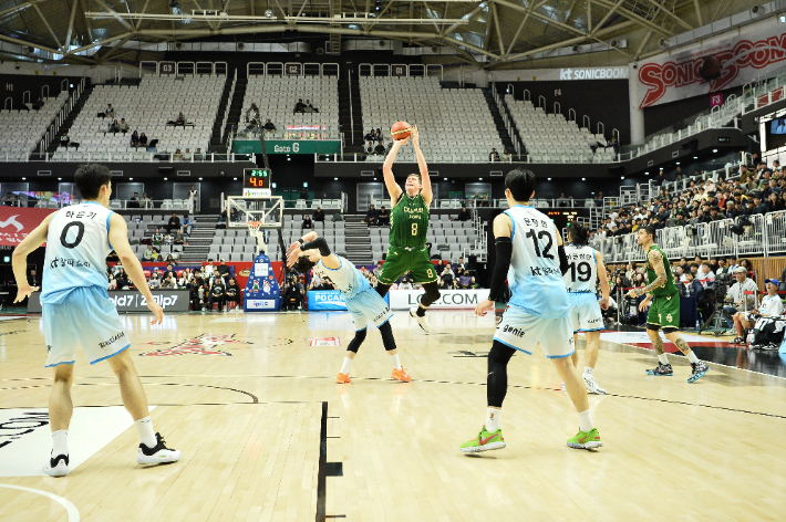 DB는 19일 수원 KT 소닉붐 아레나에서 열린 2025-2026 LG전자 프로농구 원정 경기에서 KT를 83-81, 2점 차로 따돌렸다. 이로써 DB는 13승9패를 기록하며 4위를 유지했고, KT는 11승12패 5할 승률이 깨지면서 6위에 머물렀다.