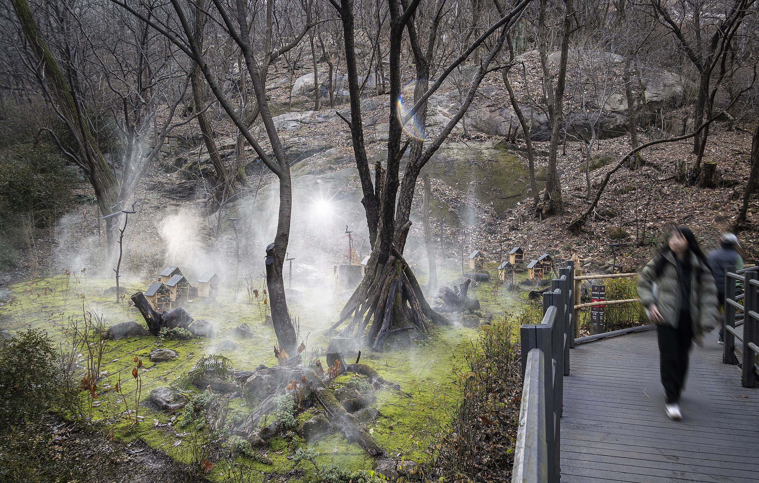 지난 17일 찾은 서울 홍제동 안산 자락길 ‘이끼 숲’에 물안개가 분사되고 있다. /이경호 영상미디어 기자 |