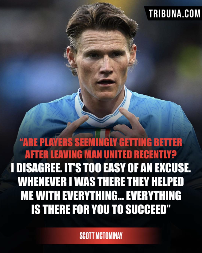 스콧 맥토미니가 본인이 맨체스터 유나이티드를 떠나서 잘 풀렸다는 주장에 대해 반박했다.