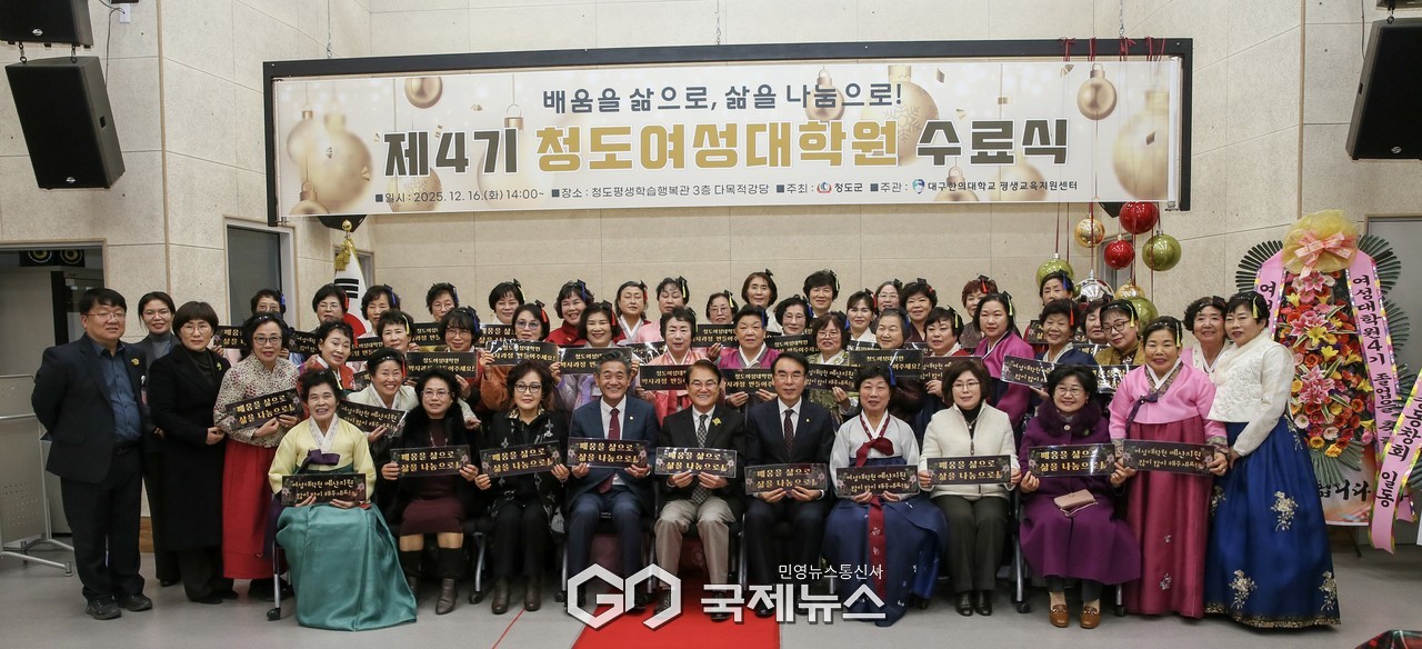 [박동거 기자] (청도=국제뉴스) 박동거 기자 = 경북 청도군은 지난 16일 청도평생학습행복관 에서 수료생 및 관계자 60여명이 참석한 가운데 "제4기청도여성대학원 수료식"을 했다.
