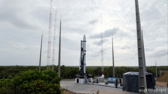 국내 우주 발사체 스타트업 이노스페이스가 독자 개발한 발사체 '한빛-나노'가 20일 오전 5시경 브라질 알칸타라 우주센터 발사장에서 기립을 완료하고 최종 기능을 점검 중이다. /사진=이노스페이스 |