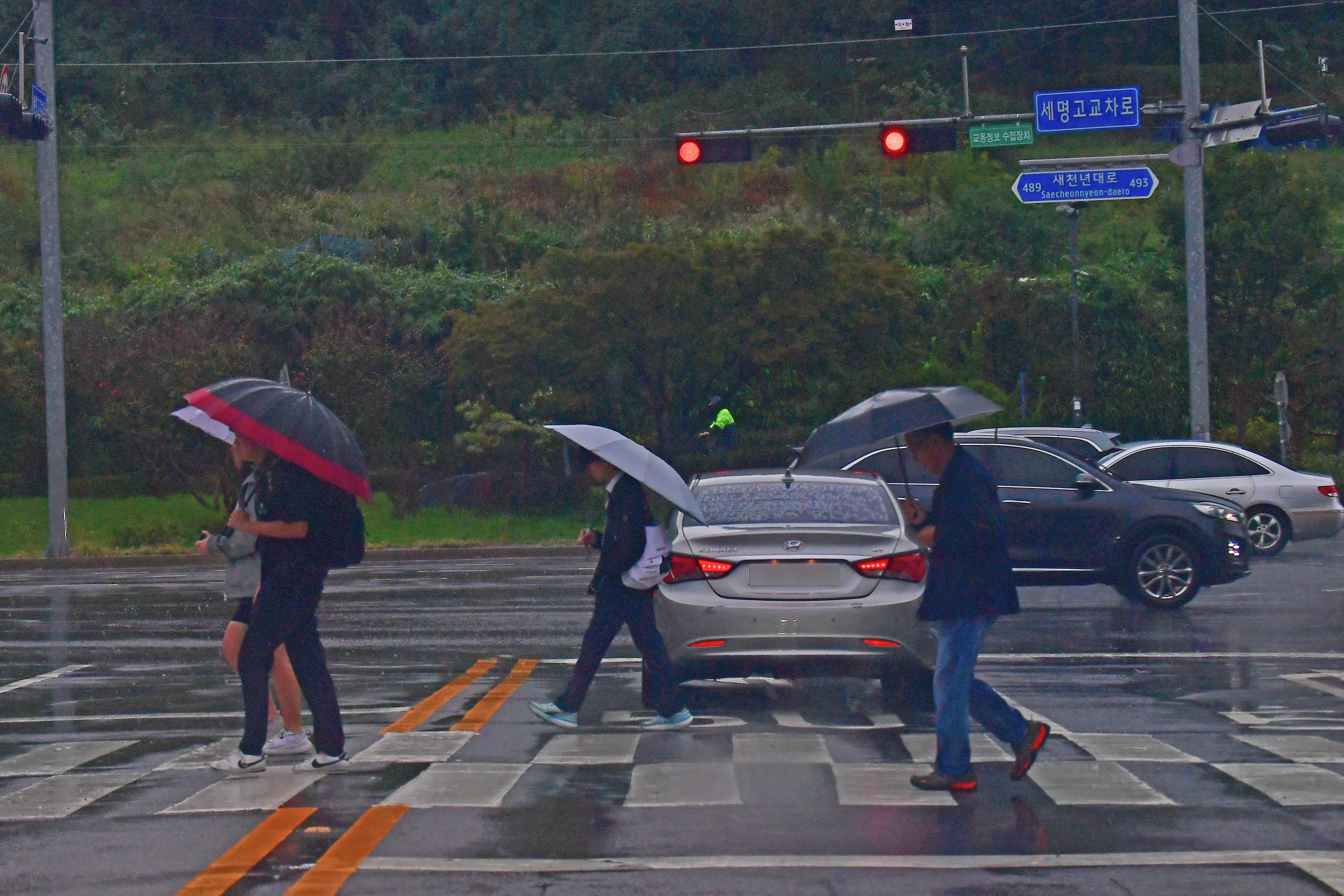 비가 오는 횡단보도를 걷는 시민들/뉴스1 |