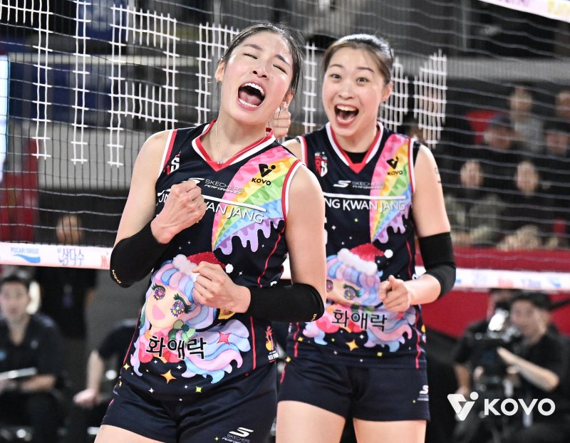 득점 후 기뻐하는 정관장의 인쿠시 (서울=연합뉴스) 19일 대전충무체육관에서 열린 2025-2026 프로배구 V리그 여자부 정관장과 GS칼텍스의 경기. 정관장 인쿠시가 득점 후 환호하고 있다. 2025.12.19 [한국배구연맹 제공. 재판매 및 DB 금지] photo@yna.co.kr (끝) |