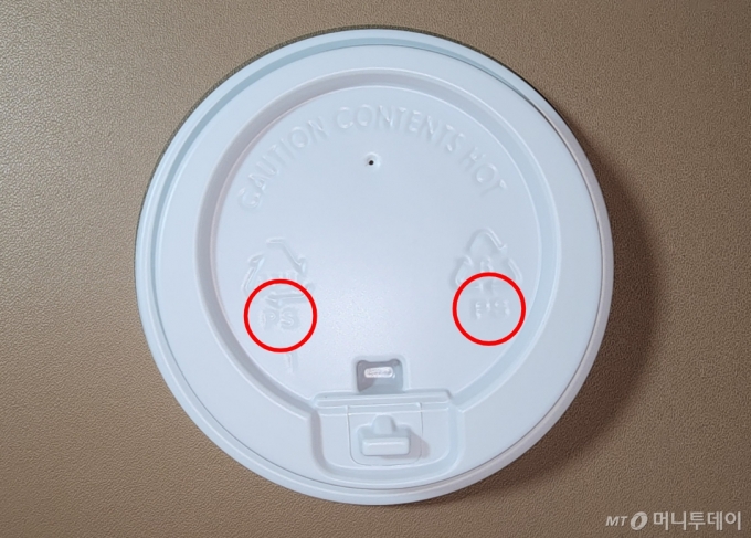 카페에서 테이크아웃용으로 주는 컵뚜껑에 플라스틱 재질이 표시돼있다. 사진 속 동그라미 안에 'PS'가 적혀있다. /사진=정심교 기자 |