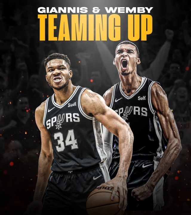 상상해 보자. 아데토쿤보와 웸반야마가 같은 유니폼을 입고 함께 뛰는 모습을 말이다. 두 선수는 내외곽을 오가며 상대를 폭격할 것이고 수비에서도 압도적인 존재감을 뽐낼 수 있다. 샌안토니오는 아데토쿤보를 영입하기 위해 현재 잘하는 젊은 선수들을 다수 내보내야 할지 모르지만 우승 후보라는 타이틀은 얻을 수 있다. 사진=저지 스웝 SNS |