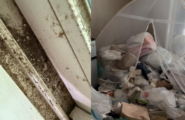 함께 공개된 사진에는 창틀 주변에 먼지와 벌레 사체로 보이는 오염물이 쌓여 있습니다.