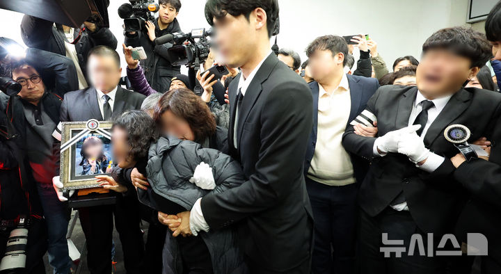 [대전=뉴시스] 강종민 기자 = 하늘 양의 영정사진 앞에서 유가족이 오열하고 있다. 2025.02.14. ppkjm@newsis.com |