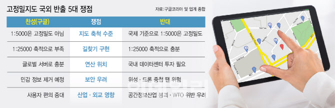 고정밀지도 국외 반출 5대 쟁점(표=이미나 기자) |