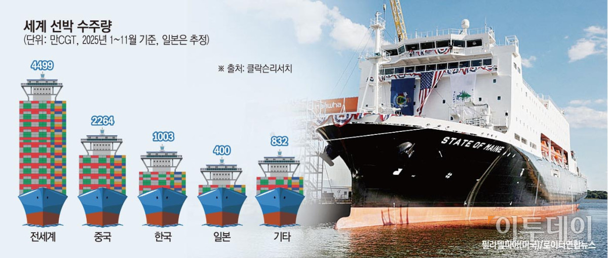 실제 일본 정부는 조선업 부활을 위해 10년간 민관 합동으로 1조 엔(약 9조5000억 원) 규모를 투입하기로 해 미국이 일본 등 다른 국가와의 협력도 함께 저울질할 수 있다는 분석도 나온다.