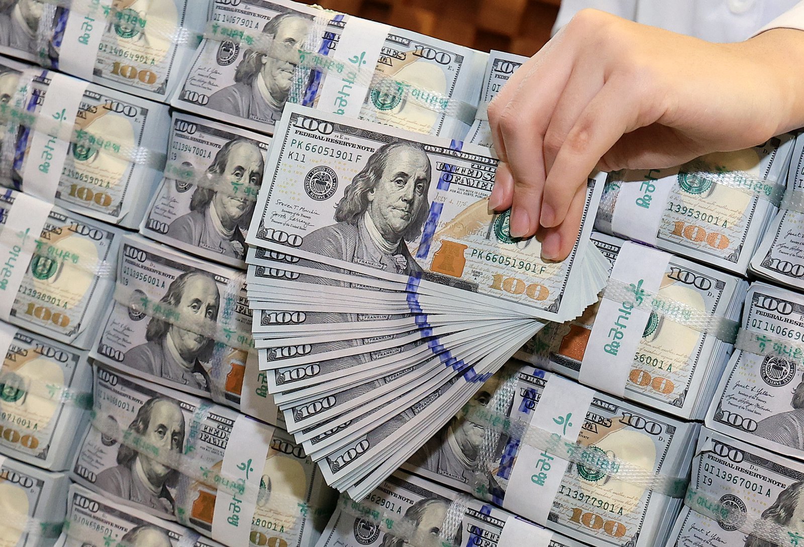 서울 중구 하나은행 위변조대응센터에서 은행 관계자가 달러화를 정리하는 모습. 2025.12.3 뉴스1