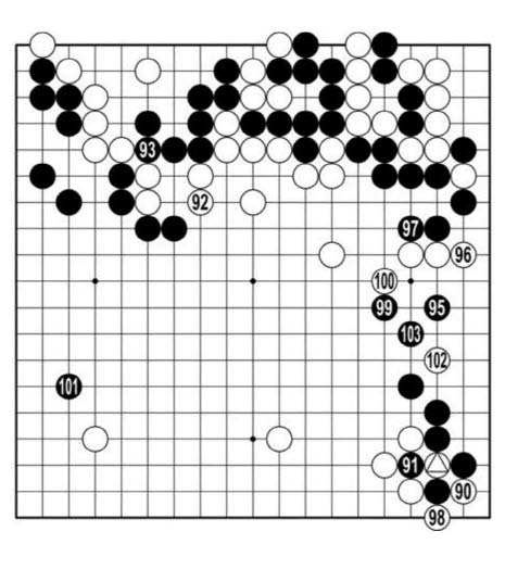 백98이 흑을 편하게 해줬다. <참고 2도> 1로 먼저 지키는 것이 나았다. 귀에서 패를 져도 다른 곳에 두 수를 둘 수 있지 않은가(94…△).