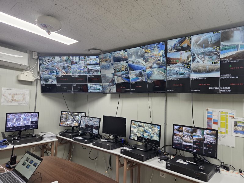 지난 19일 오후 서울 서초구 반포동 810번지 일대 디에이치 클래스트 건설 현장 통합관제실. 고정식·이동식 CCTV 화면을 통해 공사 구역 전반이 실시간으로 관리되고 있다. |