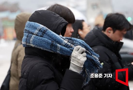 서울 종로구 광화문 네거리에는 두툼한 복장을 한 직장인이 목도리를 하고 있다. 아시아경제DB |