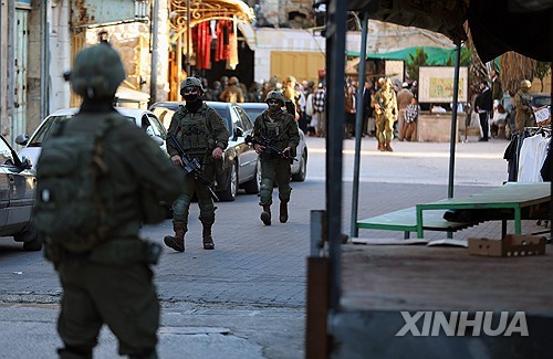 서안 유대인 정착지 순찰하는 이스라엘군 |