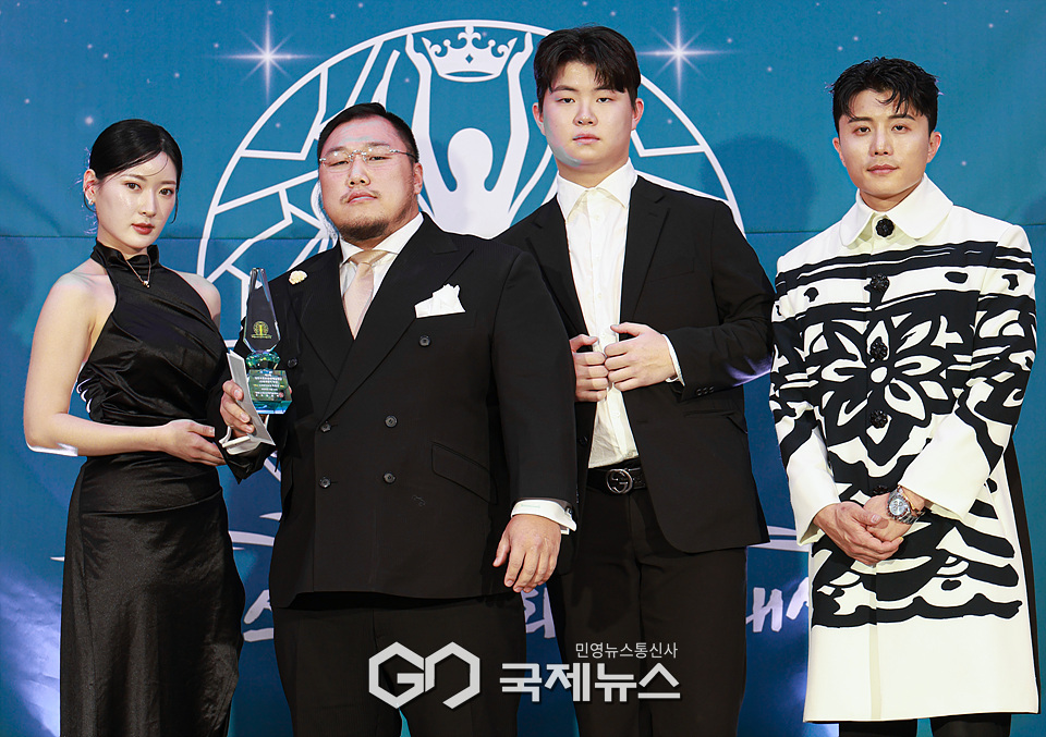 (서울=국제뉴스) 이대웅 기자 = '제3회 대한스포츠문화예술대상' 시상식이 12일 경기도 성남시 동서울컨벤션센터에서 열렸다. 이날 스포테이너 부문에서 인플루언서대상을 수상한 스트롱맨 하제용이 기념 포즈를 취하고 있다.