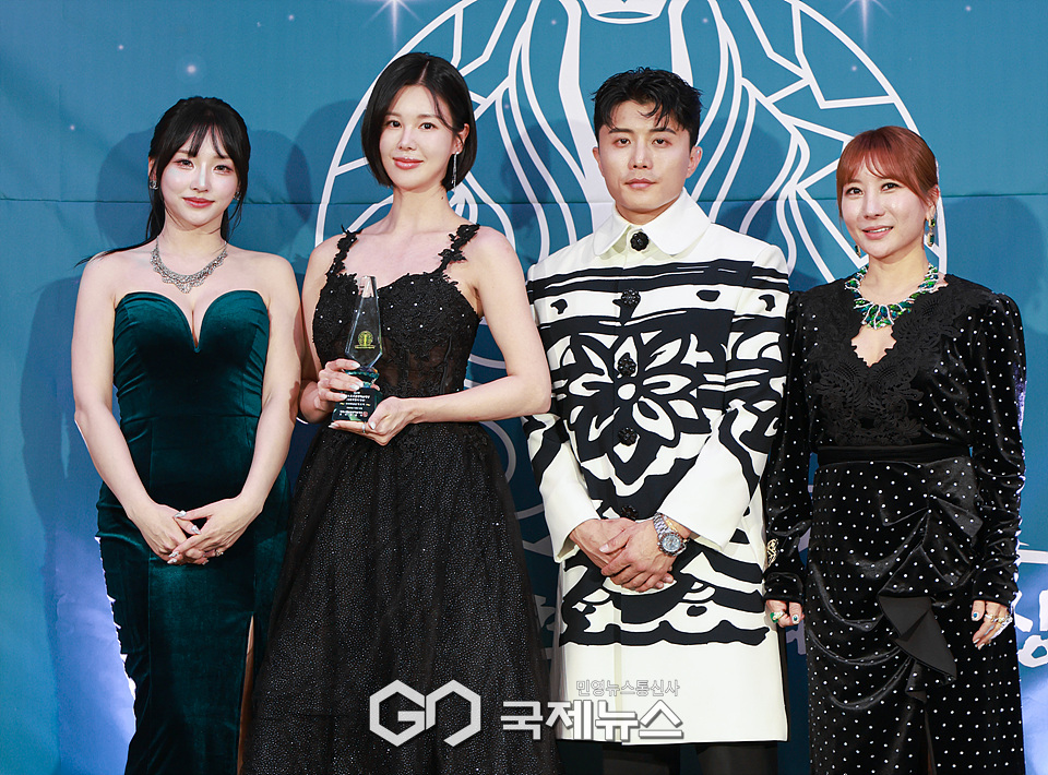 (서울=국제뉴스) 이대웅 기자 = '제3회 대한스포츠문화예술대상' 시상식이 12일 경기도 성남시 동서울컨벤션센터에서 열렸다. 이날 치어리더 부문에서 인플루언서대상을 수상한 치어리더 이시아가 기념 포즈를 취하고 있다.