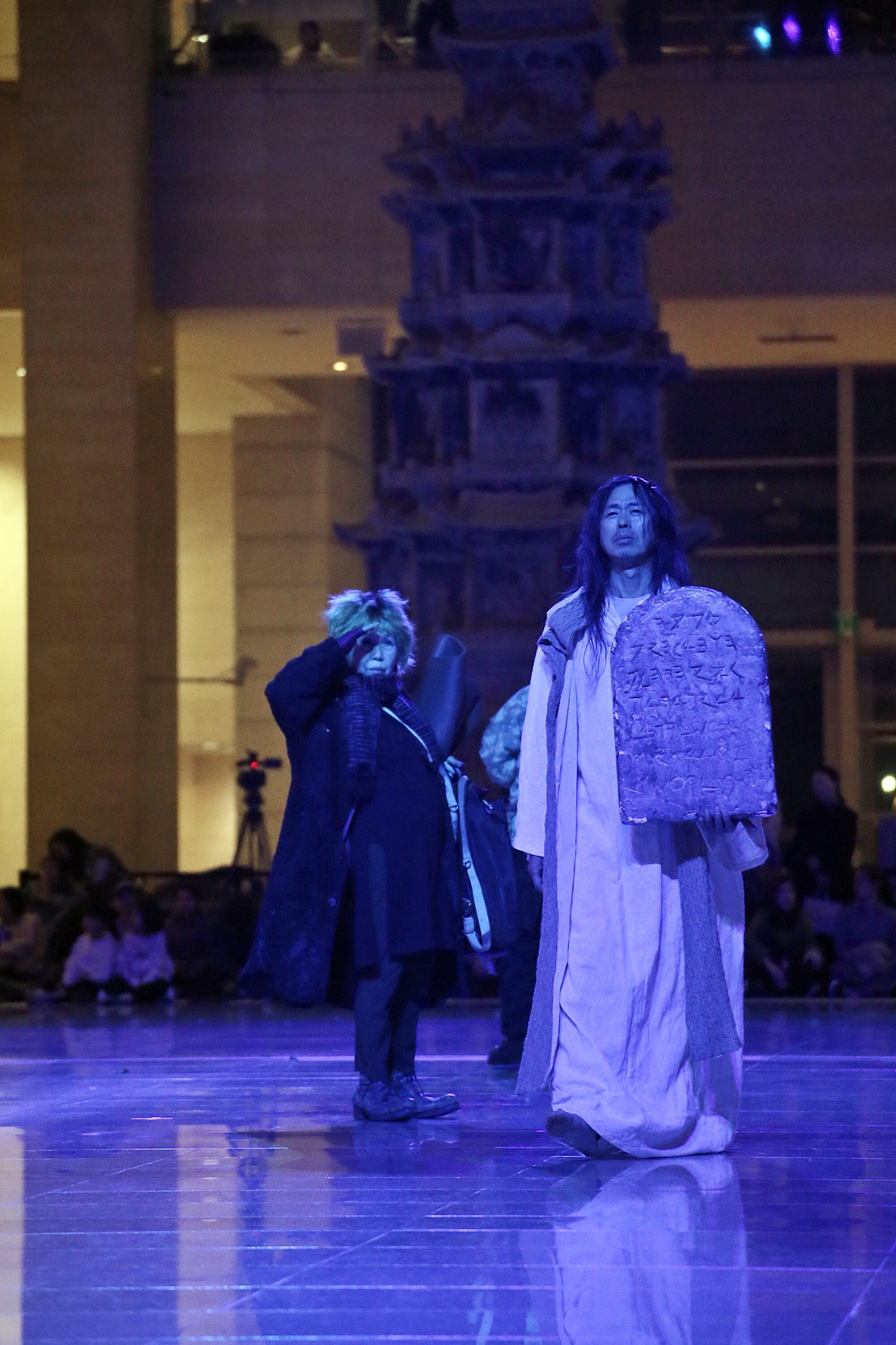 서울 용산 국립중앙박물관, 경천사지십층석탑으로 향하는 ‘역사의 길’에서 17일과 20일 열린 비언어 총체극 ‘우리가 서로 알 수 없었던 시간- 삶의 무도회’ 공연. /이태훈 기자 |