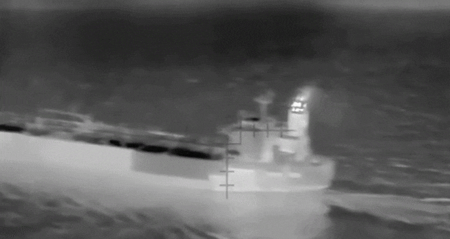 지난 19일 우크라이나 보안국(SBU)이 공개한 러시아 '그림자 선대' 유조선 드론 공습 장면. /우크라이나 보안국(SBU) |