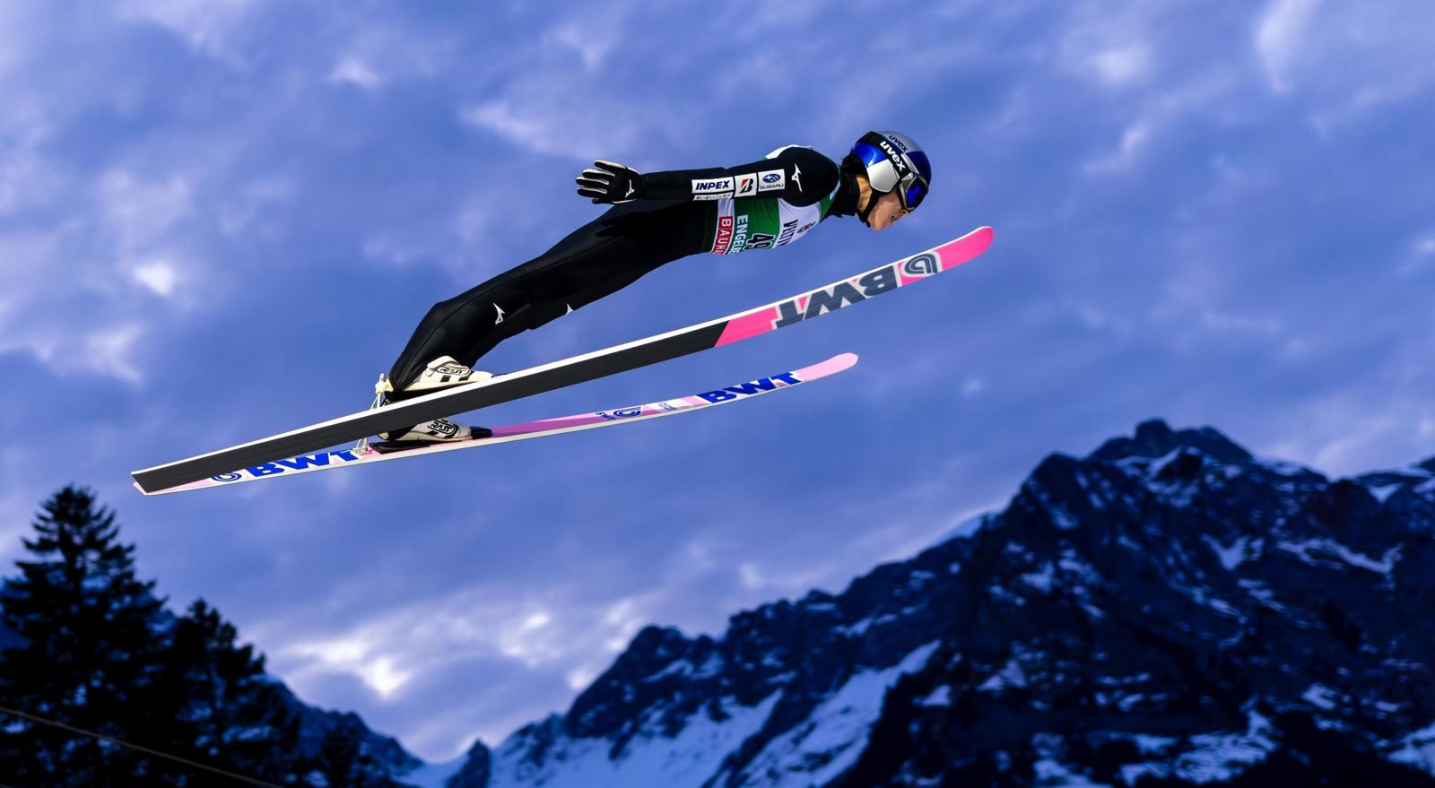 고바야시 료유(29·일본)가 20일(현지 시간) 스위스 엥겔베르크에서 열린 2025∼2026 국제스키·스노보드연맹(FIS) 스키점프 월드컵 제10차 대회 라지힐 결선에서 공중을 날고 있다. 이날 우승은 1, 2차 시기 합계 330.2점을 받은 도멘 프레베치(26·슬로베니아)가 차지했다. 2022년 베이징 겨울올림픽 때 이 종목에서 은메달을 딴 고바야시는 6위(314.1점)로 대회를 마쳤다.