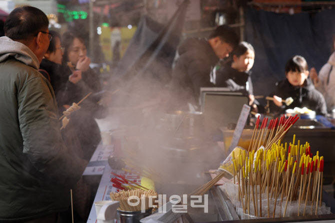 찬 공기가 남하하면서 아침 기온이 큰 폭으로 낮아져 최저 기온 -6~5도로 추운 겨울 날씨를 보인 21일 서울 한 시장에서 시민들이 어묵을 먹고 있다. (사진=이영훈 기자) |