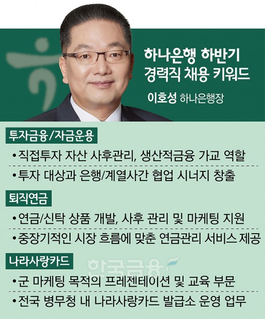 [한국금융신문 장호성 기자] 이호성 행장이 이끌고 있는 하나은행은 올해 하반기 신입채용에서 ICT와 디지털·AI 분야의 인력풀을 두텁게 했다.