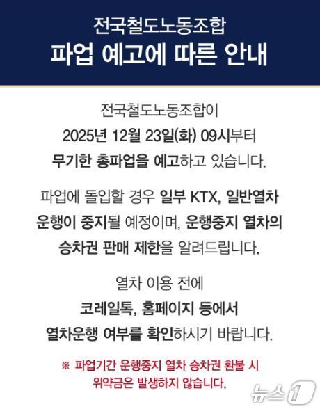 코레일톡 파업예고 안내문(한국철도공사 대구본부 제공. 재판매 및 DB금지) |