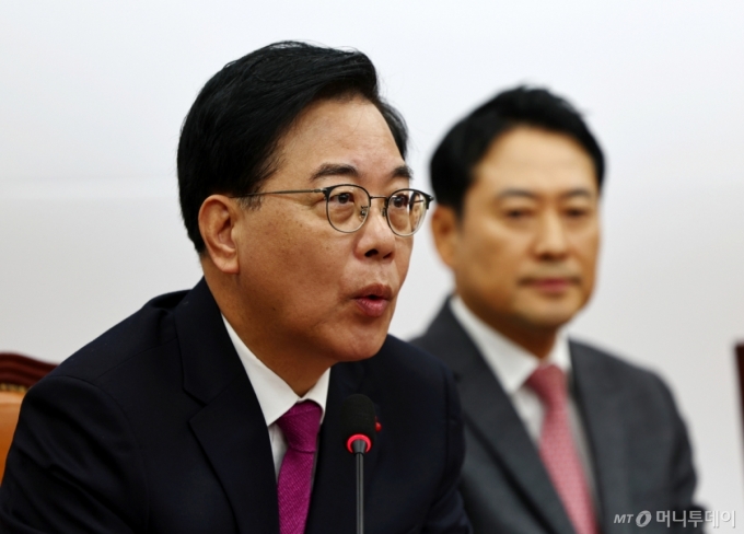 [서울=뉴시스] 김명년 기자 = 송언석 국민의힘 원내대표가 22일 오전 서울 여의도 국회에서 열린 최고위원회의에서 발언하고 있다. 2025.12.22. kmn@newsis.com /사진=김명년 |