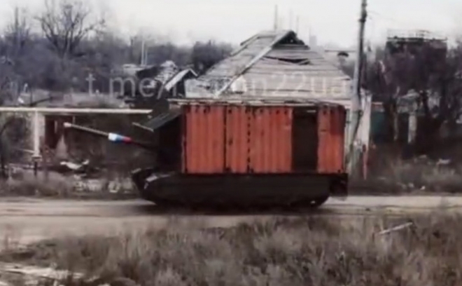 러시아와 우크라이나 전쟁이 장기화하면서 물자가 부족해지자 예상치 못한 기괴한 장비도 전장에 등장하고 있다. 지난 21일(현지시간) 우크라이나 군사 전문 매체 디펜스 익스프레스 등 현지 언론은 해상용 컨테이너를 뒤집어쓴 러시아군 전차 모습을 공개했다.