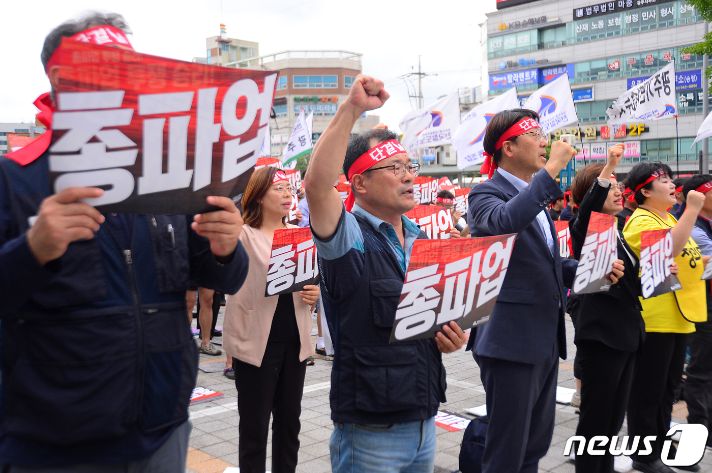 전국철도동조합 호남지방본부가의 광주송정역 광장 앞 총파업 출정식. 뉴스1 DB |