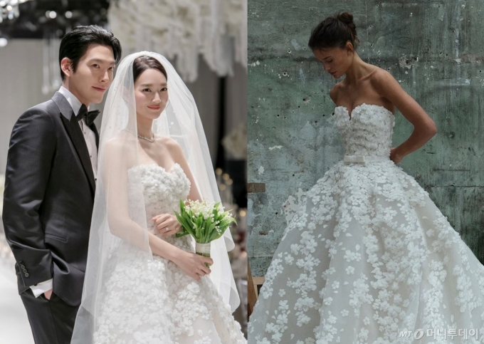 이날 신민아가 착용한 드레스는 '엘리 사브'(Elie Saab) 2026 봄 브라이덜 컬렉션 제품이다. 가격은 2만8600달러(약 한화 4224만원)다.