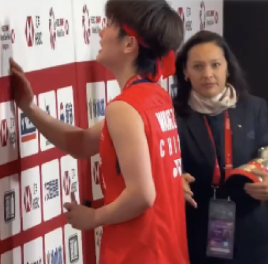 경기 종료 후 왕즈이는 은메달을 목에 걸고 안세영과 함께 사진을 찍었다. 이후 현지 취재 기자들과의 인터뷰를 진행하던 도중 왕즈이는 참았던 눈물을 흘렸다.