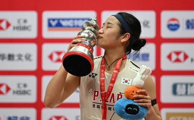 시즌 11번째 우승 트로피 들어보이는 안세영 [사진=AFP·연합뉴스] |