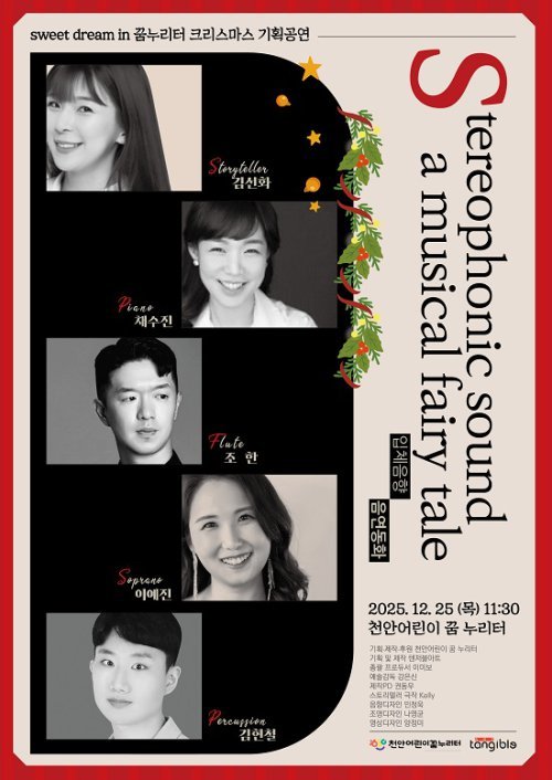 텐저블아트는 이날 천안 어린이꿈누리터 대공연장에서 입체음향 음연동화 ‘Stereophonic Sound, a Musical Fairy Tale’과 어린이 창작 뮤지컬 ‘푸푸와 하루 - 바람탐험대’ 등 두편의 공연을 진행할 예정이다. 이번 공연은 크리스마스를 맞아 어린이와 가족 관객에게 따뜻하고 의미 있는 추억을 선사하기 위해 기획됐다.