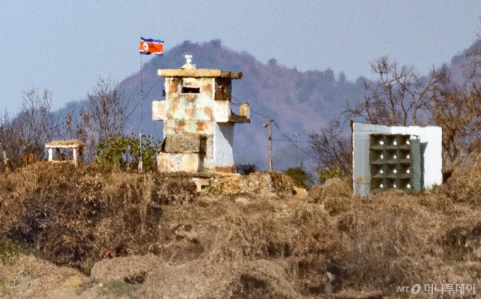 지난 11월18일 경기도 파주 접경지역에서 바라본 북측 초소. / 사진=뉴스1 |