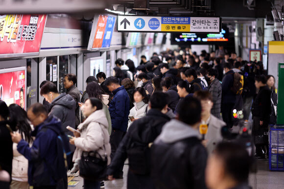 1호선 서울역 승강장에서 승객들이 지하철을 기다리고 있다. 연합뉴스 |
