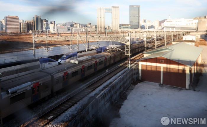 [서울=뉴스핌] 최지환 기자 = 22일 오후 서울 용산구 용산역 인근에서 열차가 오가고 있다. 전국철도노동조합은 23일 오전 9시부터 무기한 총파업 돌입을 예고했다. 2025.12.22 choipix16@newspim.com