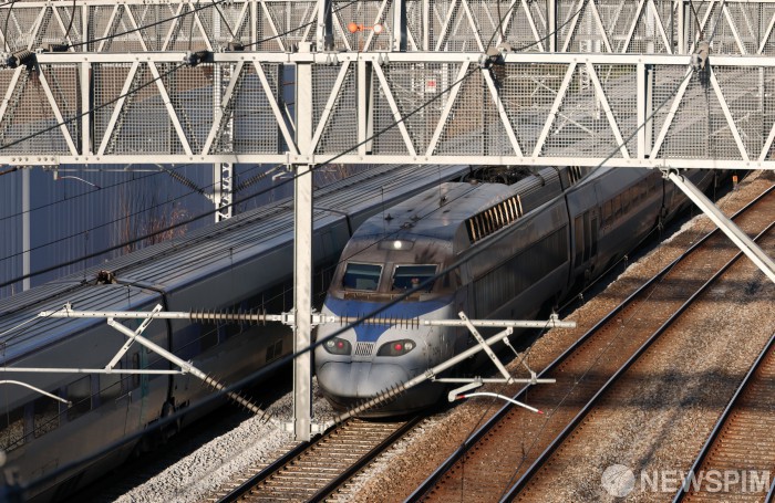 [서울=뉴스핌] 최지환 기자 = 22일 오후 서울 용산구 용산역 인근에서 열차가 오가고 있다. 전국철도노동조합은 23일 오전 9시부터 무기한 총파업 돌입을 예고했다. 2025.12.22 choipix16@newspim.com