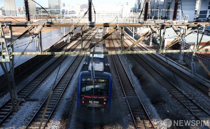[서울=뉴스핌] 최지환 기자 = 22일 오후 서울 용산구 용산역 인근에서 열차가 오가고 있다. 전국철도노동조합은 23일 오전 9시부터 무기한 총파업 돌입을 예고했다. 2025.12.22 choipix16@newspim.com